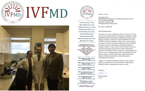 2016年1月,美域佳华正式与IVFMD签署授权协议,美域佳华成为IVFMD在中国大陆地区的唯一授权转诊机构!
